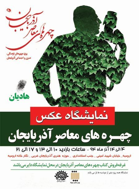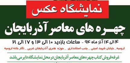 نمایشگاه عکس « چهره های معاصر آذربایجان » از چهارم آذرماه سال جاری به مدت ۱۰ روز به همت حوزه هنری آذربایجان غربی در نگارخانه ارومیه افتتاح شد.