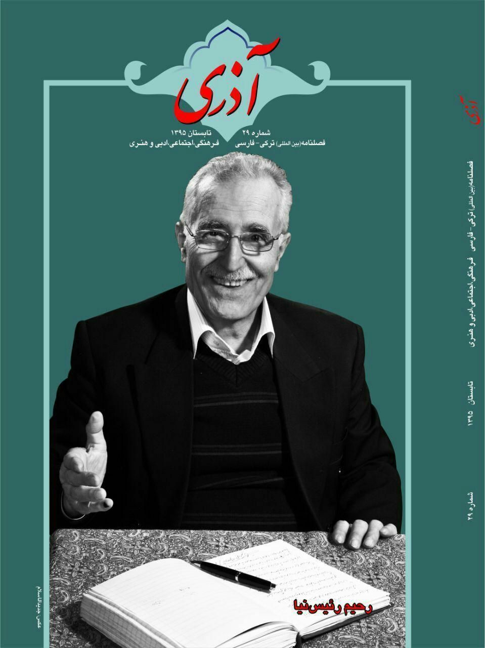 شماره ۲۹ (شماره یازدهم دورهی جدید) مجله «آذری» ویژهی استاد «رحیم رئیسنیا» نویسنده و مترجم نامآشنای کشور به دو زبان فارسی و ترکی آذربایجانی با سردبیری حسن ریاضی(ایلدیریم) و با گستره توزیع بینالمللی منتشر شد. در این شماره آثار نویسندگان، شعرا و هنرمندان زیر چاپ شده است: