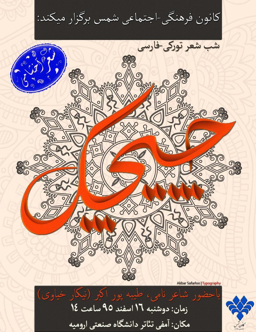 گؤرکملی آذربایجان شاعری «نیگار خانیم خیاوی»نین اشتراکی ایله اورمو شهرینده شعیر آخشامی کئچیرهلهجکدیر. «چیچک» آدلی شعیر آخشامی «شمس اجتماعی مدنی اوجاغی» طرفیندن تشکیل ائدیلیبدیر . گیریش عموم اوچون آزاددیر.