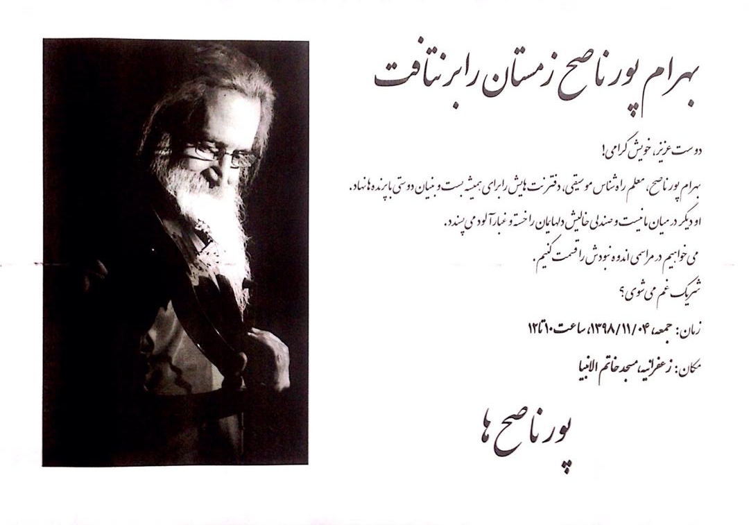 چوخ تاسفله، آذربایجانلی یستهکار اوستاد «بهرام پورناصح» دی آیینین سونونجو گونو تهران شهرینده حیاتدان ابدیلیک آیریلدی.