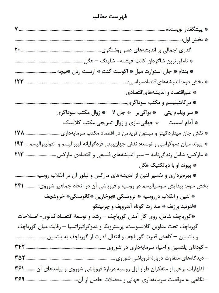 کتاب «تاریخ اندیشه‌های اقتصاد سیاسی غرب(با نگاهی به بنیادهای فلسفی آن در قرن نوزدهم و بیستم)» از سایت انتشارات رهرو پویا Rahroepouya.ir بصورت آنلاین و از کتابفروشی‌های معتبر کشور قابل تهیه است.
